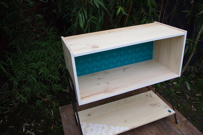 meuble-bibliotheque-hifi-téle-vintage-design-peint-bois-massif-made-in-France-fabrication-française-pied-acier-artisan-Normand-papier-peint-16