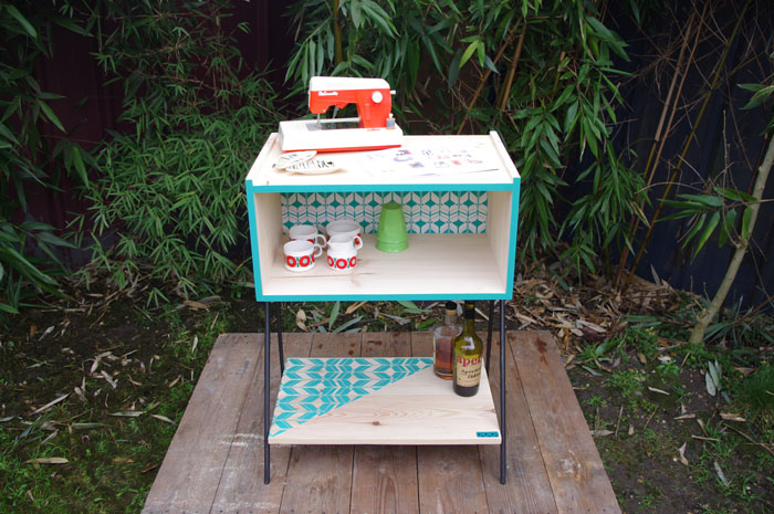petit-meuble-bibliotheque-hifi-téle-vintage-design-peint-bois-massif-made-in-France-fabrication-française-pied-acier-artisan-Normand-papier-peint-9